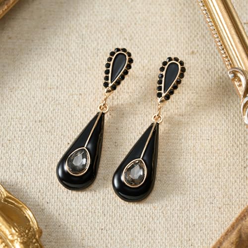 SWEETV Vintage 18K Gold Plated Statement Earrings for Women Trendy, Antique Enamel Chunky Drop Dangle Earrings, Big Crystal Earrings for Fashion Prom Jewelry Gifts