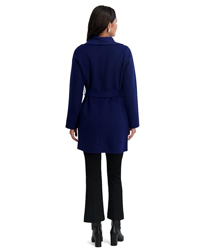 Tahari Women’s Double-Faced Luxury Soft Wool Blend Peacoat- Wrap Wool Coat with Removable Belt, Lapis, Large