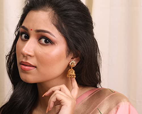 Specification: TARINIKA Antique Gold-Plated Indian Jhumka Earring for Women Brass CZ Temple Design Desi Dangle Jewelry Wedding Jewelry Ethnic Occasion Gift for Her (Utash Antique (White))