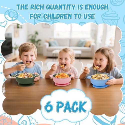 Specification: Tikmos 6 Pack Stainless Steel Baby Bowls with Suction 2-in-1 BPA-Free Removable Silicone Sleeve, Non Slip, Anti Scald, Unbreakable, Dishwasher Safe for Toddler Kids Food Feeding