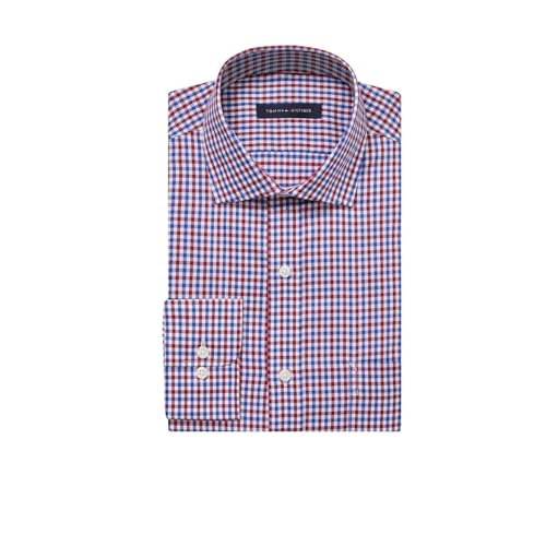 Tommy Hilfiger mens Regular Fit Non Iron Check Dress Shirt, Rouge, 18.5 Neck 34 -35 Sleeve US