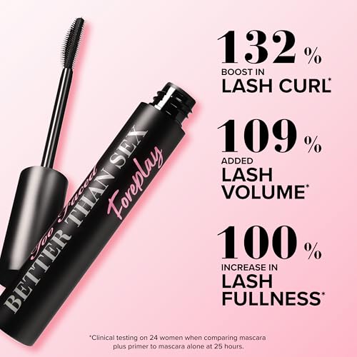- Better Than Sex Foreplay Mascara Primer: Improves mascara wear for 24+ hours