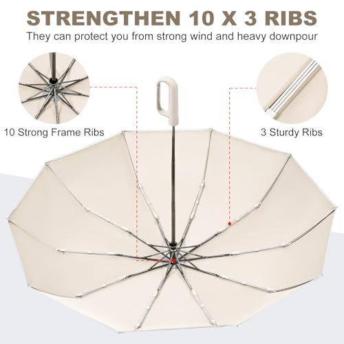 Specification: TradMall Travel Umbrella, 280T Fabric Windproof Automatic Portable Compact Folding Umbrellas for Rain with Reflective Stripe for Women and Men, Beige