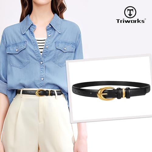 Specification: TRIWORKS Women Leather Belt for Jeans Pants Fashion Ladies Skinny Faux Leather Dress belt with Gold Buckle
