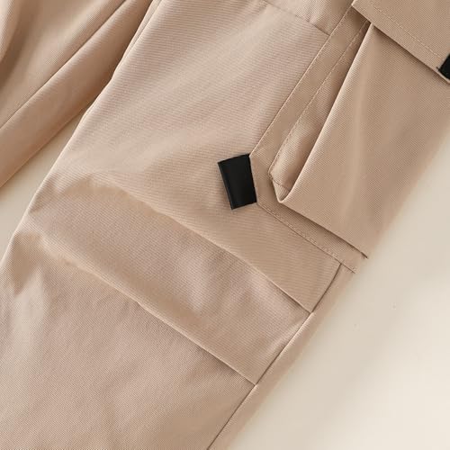 Twosya Boys’ Cargo Joggers Pants Elastic Waist Casual Jogging Trousers Khaki