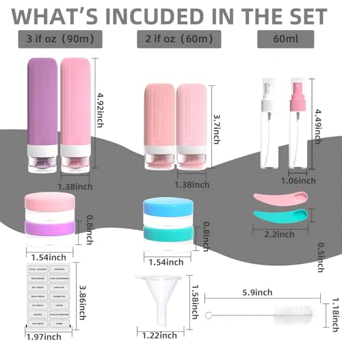 - 【Safe Material + TSA Approved: Faster Security Check】:The containers are made of high-purity safe materials, strictly tested, odorless, and reassuring to use. The 3oz capacity fully meets TSA airline standards; paired with the transparent toiletry bag, there’s no need for repeated unpacking during security checks—ideal for business trips and vacation flights to pass through quickly.