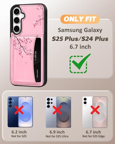 Uppuppy for Samsung Galaxy S25Plus/S24Plus Case with Wallet – Fits 4 Card Slots, Compatible with MagSafe for Women Leather Credit Card Holder Kickstand Cover for Samsung S25Plus/S24Plus, Peach Blossom