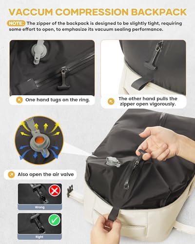 Specification: Vacuum Travel Backpack for Women, Personal Item Carry on Vacpack Backpacks Airplane Essentials Approved 18x14x8 inches for Men,Laptop Waterproof Work Compression bags Casual Daypack,Beige