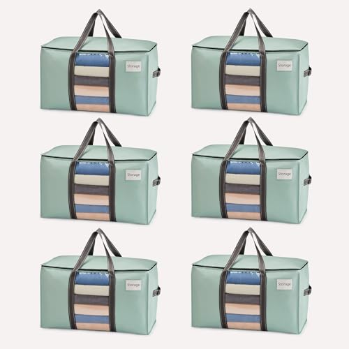 VENO 6 Pack Moving Bags, Moving Supplies, Moving Boxes, College Packing Storage Boxes with Lids Alternative, Heavy Duty Totes, Extra Large, Sturdy Handles, Zipper (Light Green with Window, 6 Pack)