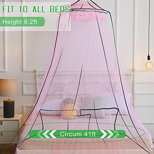 VISATOR Mosquito Net Bed Canopy for Girls,King Canopy Bed Curtains Queen Size from Ceiling,Dome Mosquito Netting Bed Tent Twin Girls Canopy Bed Decor for Baby Crib,Kid Bed and Adult Beds (Pink-Dome)