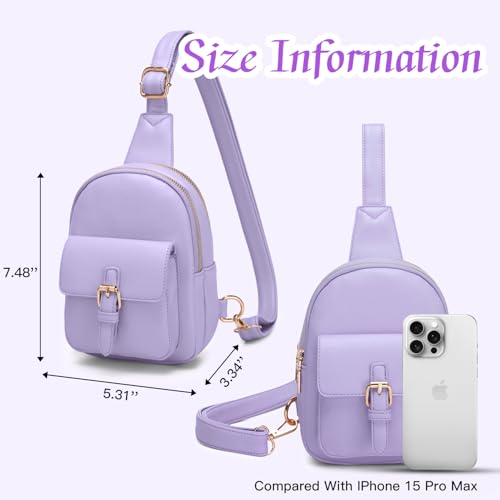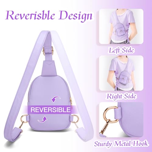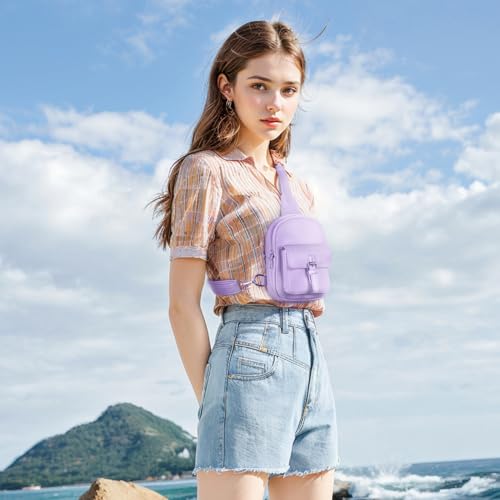 Viverte Small Sling Bag Fanny Pack for Girls Vegan Leather 3 Pockets Crossbody Purse for Women Cute Stuff Gift for Teen Girls with Adjustable Strap (Lavender)