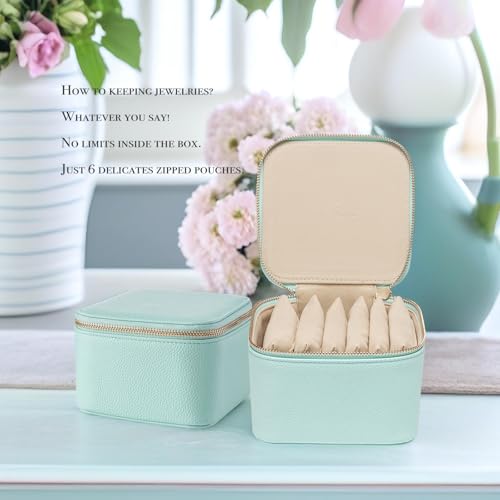 Specification: Vlando Travel Jewelry Box Organizer – 6 Small Velvet Zipped Pouches Pockets for Jewelries Necklaces Rings Earrings Sorting Storage, Aqua Blue