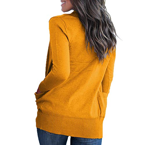 VOIANLIMO Womens Classic Open Front Long Sleeve Knit Mustard Cardigan Sweaters with Pockets XL Size