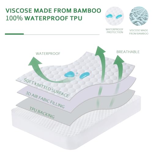 Waterproof King Size Mattress Protector, Viscose 3D Cooling Breathable Air Fabric Soft Mattress Pad Cover, Fitted 8-18 inch Deep Pocket, Washable Noiseless (White, King)