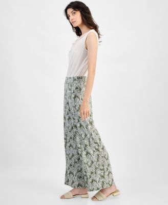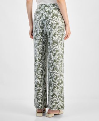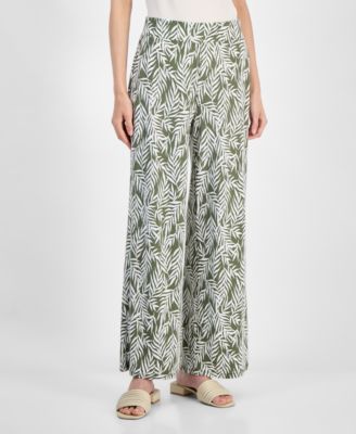Women’s Leaf-Print Pull-On Wide Ankle Pants