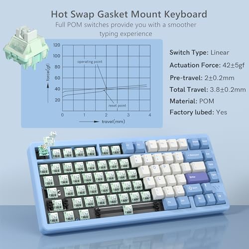 - 【Hot-Swappable Keyboard & Full POM Switches】Hot swap gasket mount keyboard. Have fun customizing the acoustic performance and typing feeling on your own preference. Hot-swap PCB allows you to replace 3 pins/5 pins switches. The keyboard is pre-installed with high-quality POM linear switch, which has advantages in use and design, provide you with a smoother typing experience. Keyboard also It is compatible with Win and Mac systems.