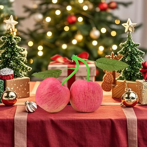 Woration Artificial Fake Pink Apple Brunch Faux Plastic Fruit Decoration Faux Simulation Apples Ornament for Home Kitchen Party Show