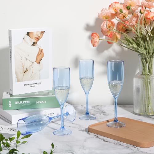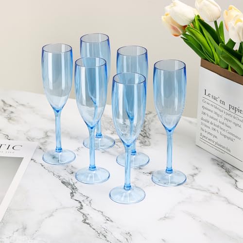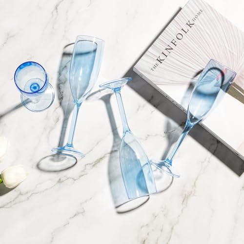 - 3.What You Will Receive: The size of the plastic champagne flutes is 8.27 inch*2 inch* 2.36 inch, and the 24 pack of clear champagne flutes is enough for most parties. The elegant champagne flutes are perfect for cocktails, mojitos, champagne, wine and other beverages, blue plastic wine glasses add flavor to your drinks.