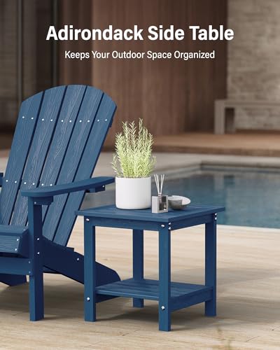 YEFU Outdoor Side Table for Patio: 16×16 in HIPS Square Outdoor End Table – 2-Tier Adirondack Tables for Patio Porch Poolside Living Room Beach Bedroom, Navy