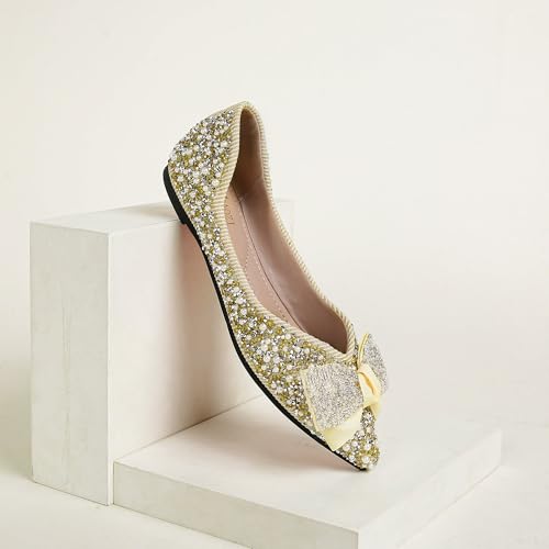 YQRUIMIAO Flats for Women Bling Rhinestone Pointed Flat Shoes Comfort Slip on Low Heel Wedding Dress Shoes Ballet Flat Shoes Gold Size – 10.5