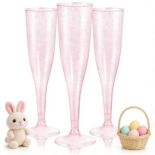 WDF 36 Pack Pink Glitter Plastic Champag…